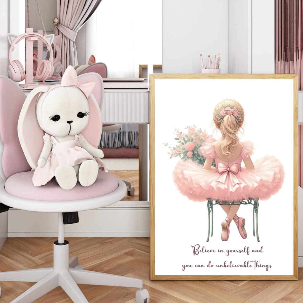 Tablou - Balerina - Born to Dance - Un tablou plin de grație și visare – perfect pentru o inimă mică, mare iubitoare de dans.Acest personaj colorat va aduce un plus de culoare și energie pozitivă pentru orice dormitor de copii sau grădiniță.Imprimarea se face pe hârtie foto fine-art, hârtie ce redă cu acuratețe cromatica excelentă și densitatea maximă pentru negru. Culorile sunt garantate să reziste perioade foarte lungi de timp fără a-și pierde din intensitate.Fiecare tablou este prelucrat manual și verificat cu atenție înainte de a fi expediat.