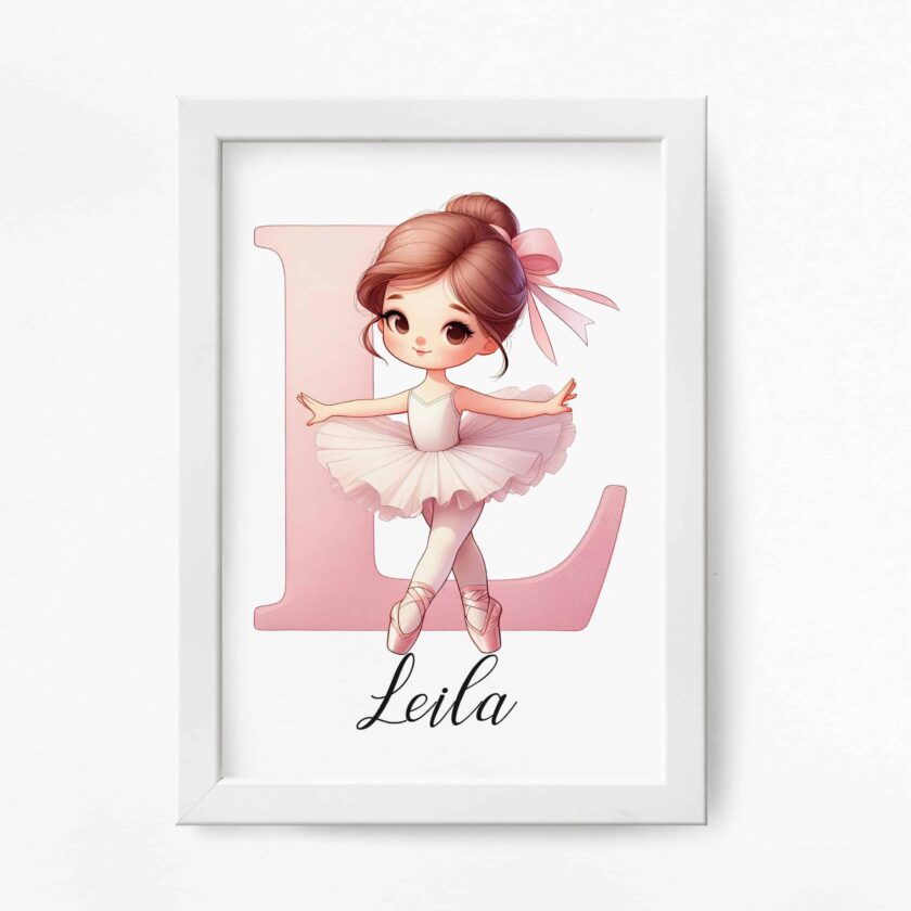Fiecare literă spune o poveste. Cu o balerină alături, această inițială devine simbolul curajului și grației.Tablou personalizat cu nume  si initiala numelui alaturi de o balerina simpatica - Tiny Dancer, Big Letter, este perfect pentru decorarea camerei fetitelor sau pentru a fi oferit cadou.mprimarea se face pe hârtie foto fine-art, hârtie ce redă cu acuratețe cromatica excelentă și densitatea maximă pentru negru. Culorile sunt garantate să reziste perioade foarte lungi de timp fără a-și pierde din intensitate.Fiecare tablou este prelucrat manual și verificat cu atenție înainte de a fi expediat.